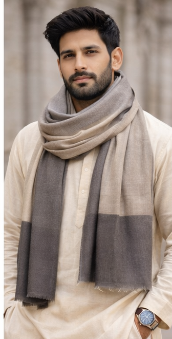 Style Tip: Pair this neutral-toned shawl with a dark bandhgala, a sharp suit, or a traditional kurta for an impeccable look that commands respect.