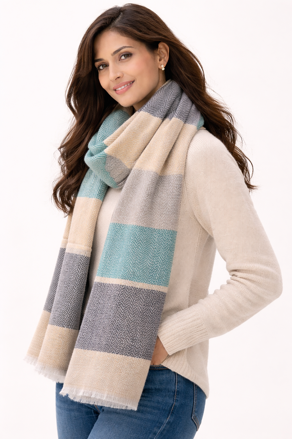 Delicately soft and exceptionally warm, the Heritage Herringbone is designed for the woman who appreciates the finer details. Whether draped over a winter coat or styled as a sophisticated muffler with evening wear, its subtle texture and natural sheen make it a versatile masterpiece for your wardrobe.